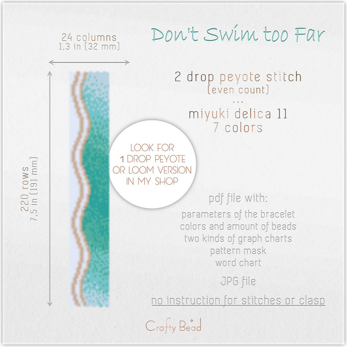29 Dont Swim too Far – 2 drop even count peyote stitch bracelet pattern