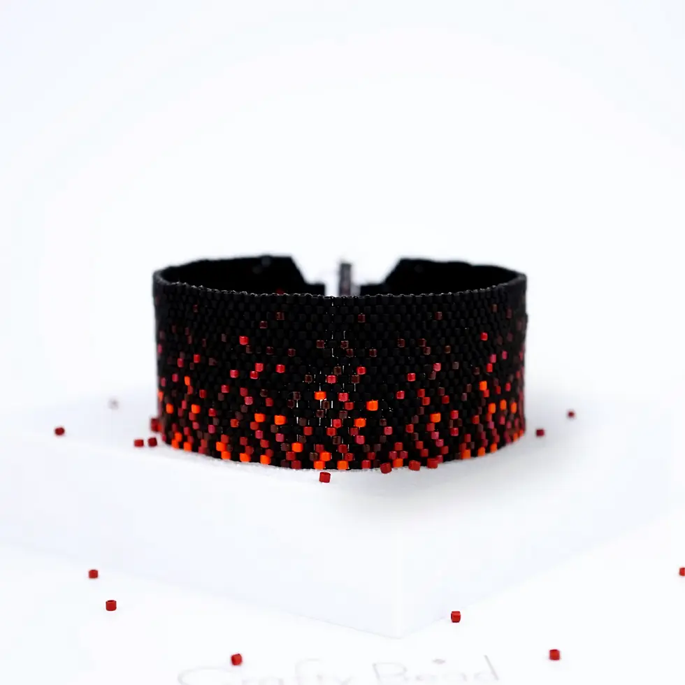 Advanced peyote and brick stitch bracelet pattern - Red Dilemma