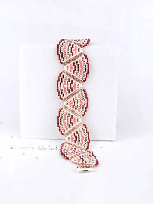 Advanced peyote and brick stitch bracelet pattern - Red Dilemma